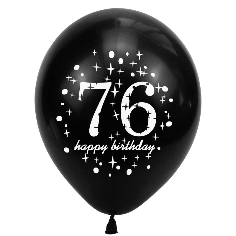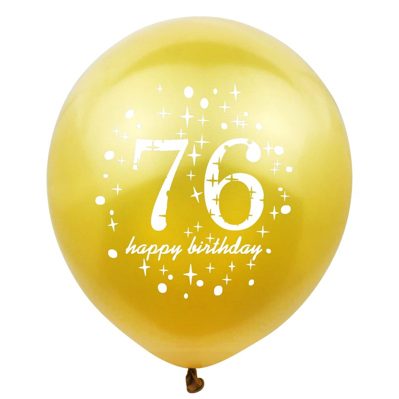 - Package:5 pieces 12 inch black latex balloon printed with the words "76 Happy Birthday",5 pieces 12 inch gold latex balloon printed with the words"76 Happy Birthday",5 piece 12 inch gold confetti balloons printed with the words"76 Happy Birthday",very suitable for women men 76th birthday party decorations