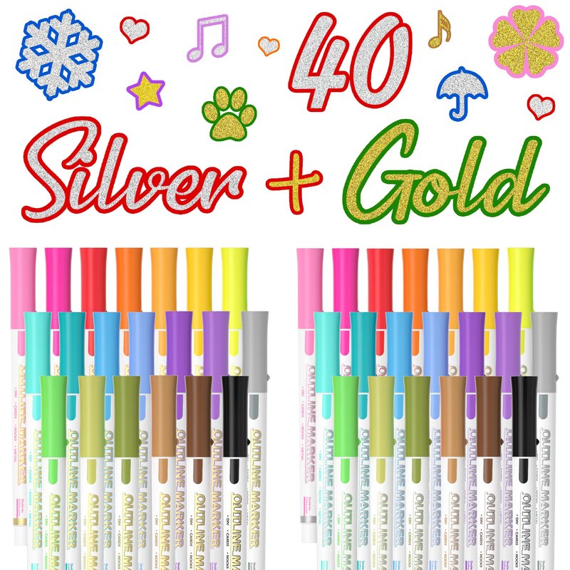 - 【40 Vibrant Colors】: This pack of Shuttle Art Outline Markers contains 20 silver-based and 20 gold-based metallic outline markers. Dual -color effect with vibrant colors is the perfect choice for designing greeting cards and DIY crafts.