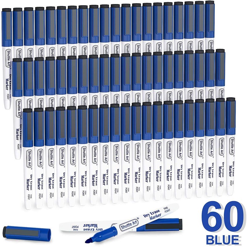 - 60 PACK: Shuttle Art 60 pack blue magnetic dry erase markers, all with blue ink. More dry erase markers with cheaper price! With durable bright ink easily to read markers in the classroom or council chamber.