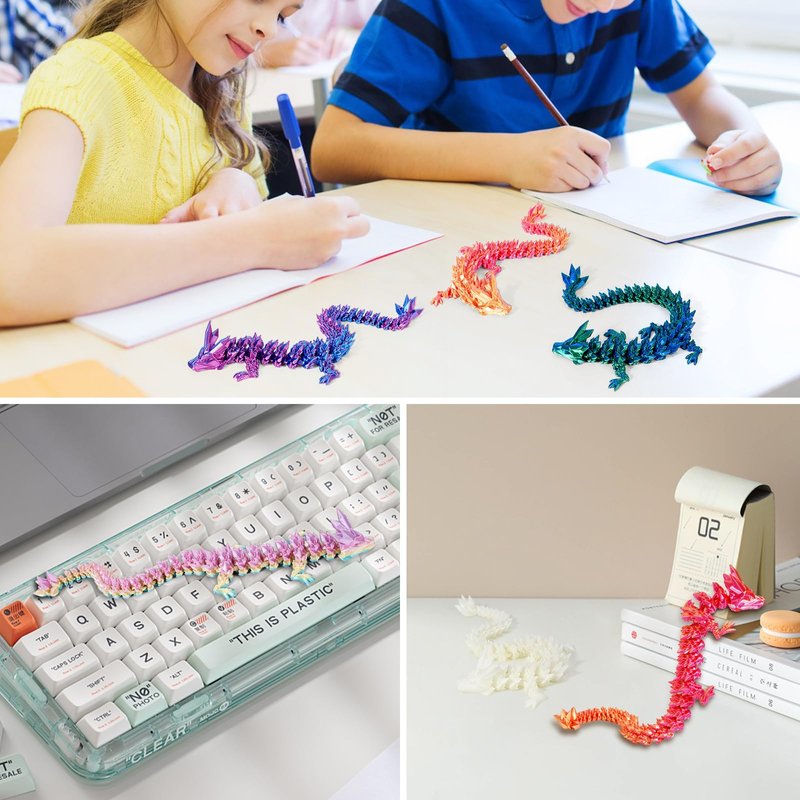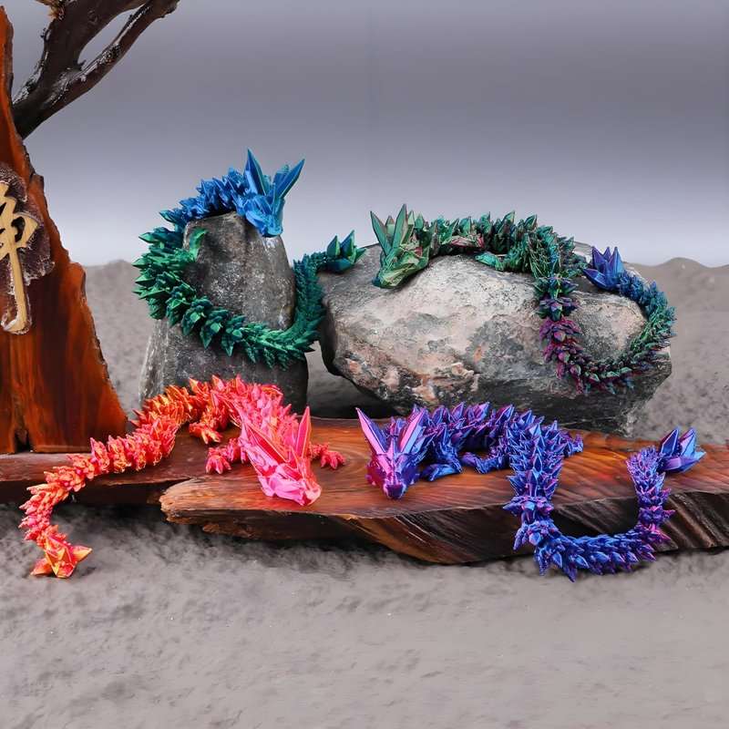 SHUWND 5pc 3D Printed Dragon Fidget Toy, Articulated Dragon, Crystal Dragon Toy, Full Articulated Dragon Crystal Dragon,Home Office Decor Executive Desk Toys