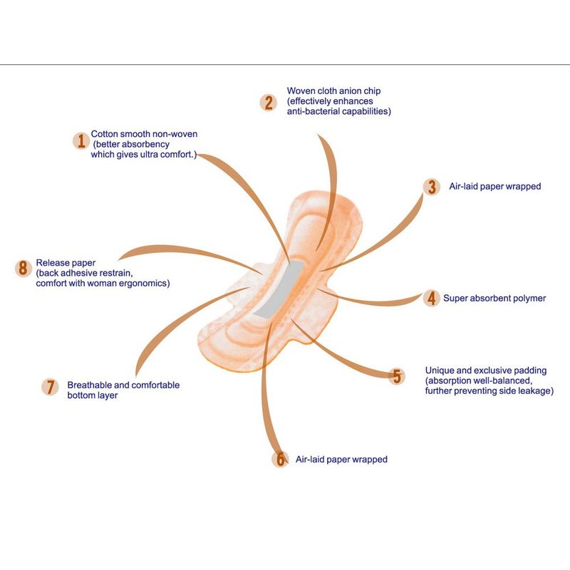 Shuya active oxygen & far-IR & anion cotton sanitary Pads for women is made of eight-layers with food-grade materials;