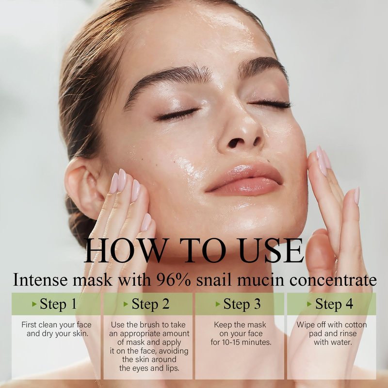 - 【HIGH CONCENTRATION OF SNAIL MUCIN】Our snail hydrating face mask contains 96% snail mucin concentrate to stimulate collagen formation, taking your skincare to the next level. Specifically targets your dark spots and dullness. Awaken your skin and restore its original radiance, leaving your skin with a beautiful, youthful glow