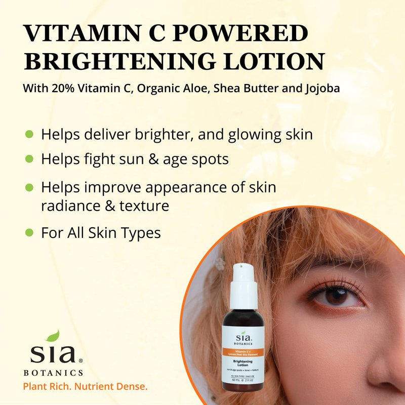 Sia Botanics Brightening Face Lotion (59ml/2oz Pump Bottle) | Facial Moisturizer w/Vitamin C, Lemon Peel Bio Ferment, Aloe Vera | Natural, Clean, Botanical Skincare for Women
