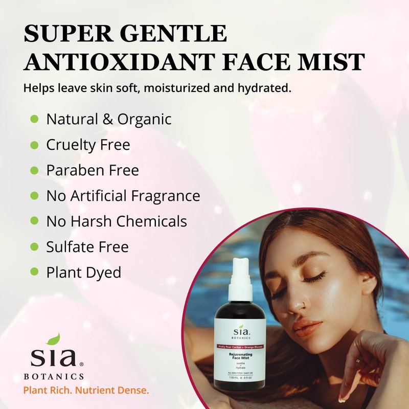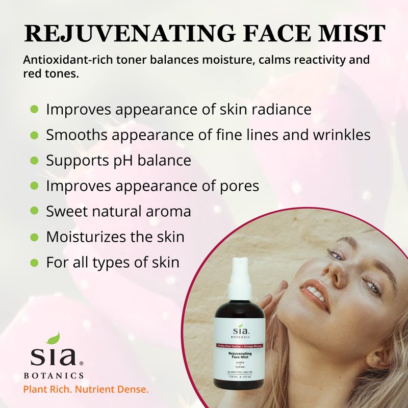 Sia Botanics Rejuvenating Face Toner Mist (118ml/4oz Bottle) | Facial Treatment w/Prickly Pear, Aloe Vera, Orange Blossom | Natural, Clean, Botanical Skincare for Women