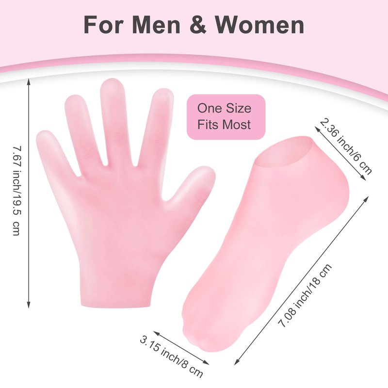 Sibba 2 Pairs Silicone Moisturizing Gloves and Socks, Spa Gel Hydrating Gloves for Overnight Bedtime Heal Eczema Sleeping Lotion Hand Treatment Gloves Socks Repair Rough Cracked Dry Chapped Skin