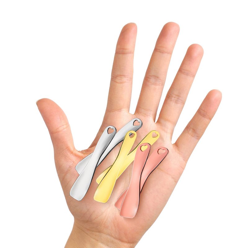 Category: Cream Spoons Color: Silver, gold, rose gold Material: Alloy Function: Face cream spoon, eye cream spoon, heart-shaped design Product size: 2.36 × 0.49 × 0.08 inches / 6 × 1.25 × 0.2 cm Packing list: 6 pieces × spoon