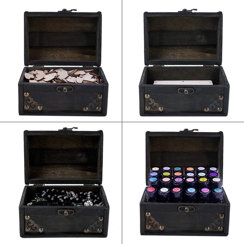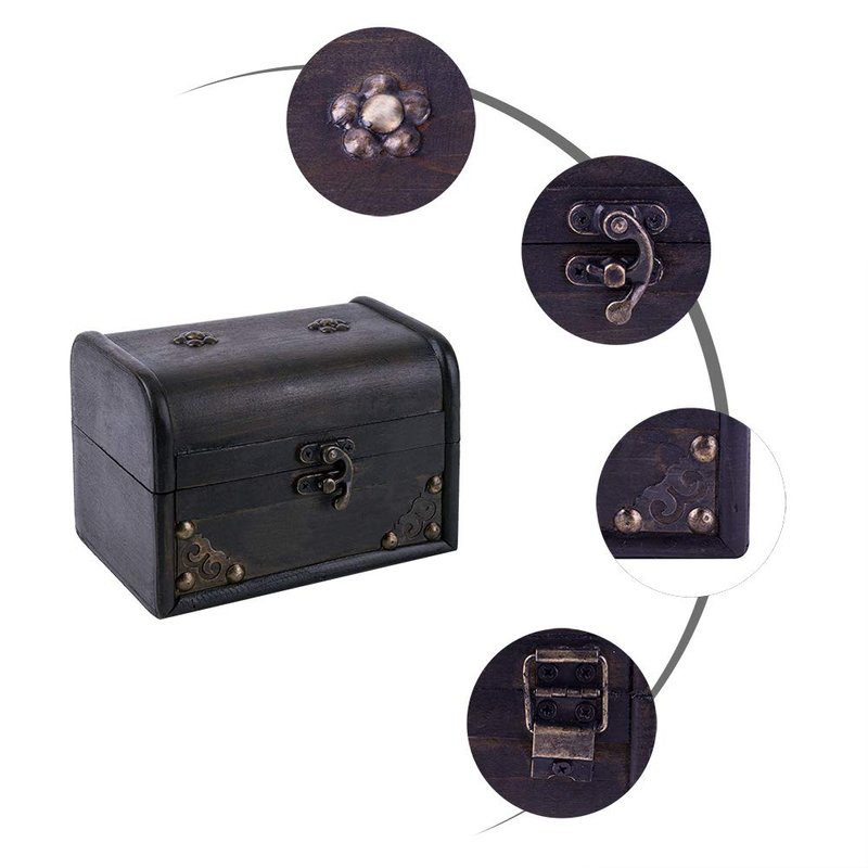 SICOHOME Treasure Box Treasure Chest Jewelry Box Wood Small Chest Gift Box