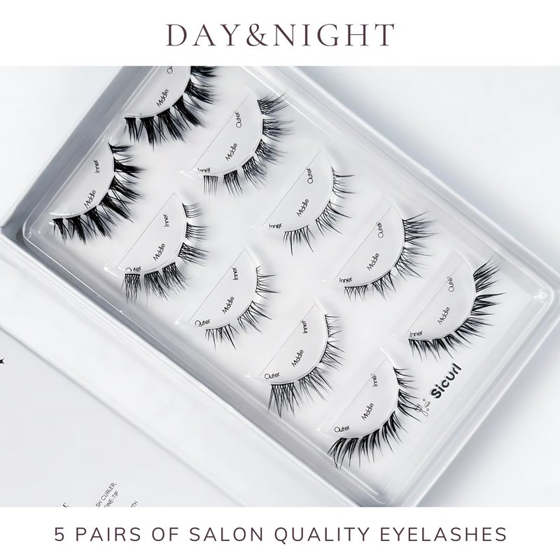Sicurl The Day&Night Lashes Pack, 5 different mixed eyelash styles, Individual Lashes, Easy to Apply, No Lash Glue Included, 5 Sets of Eyelashes