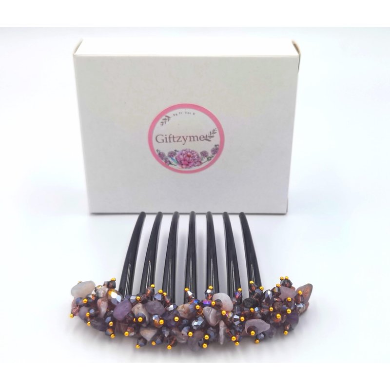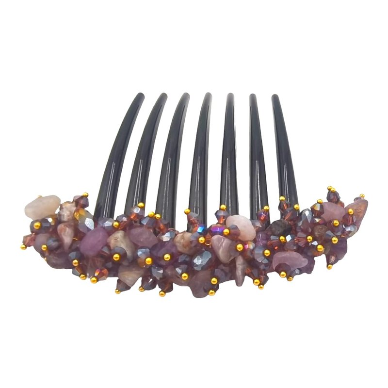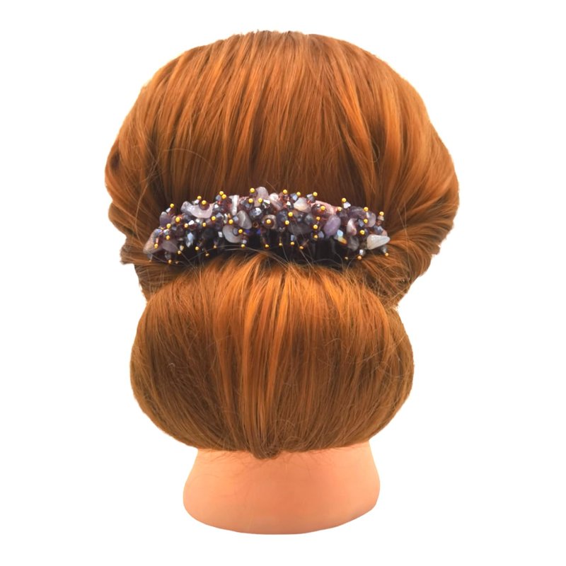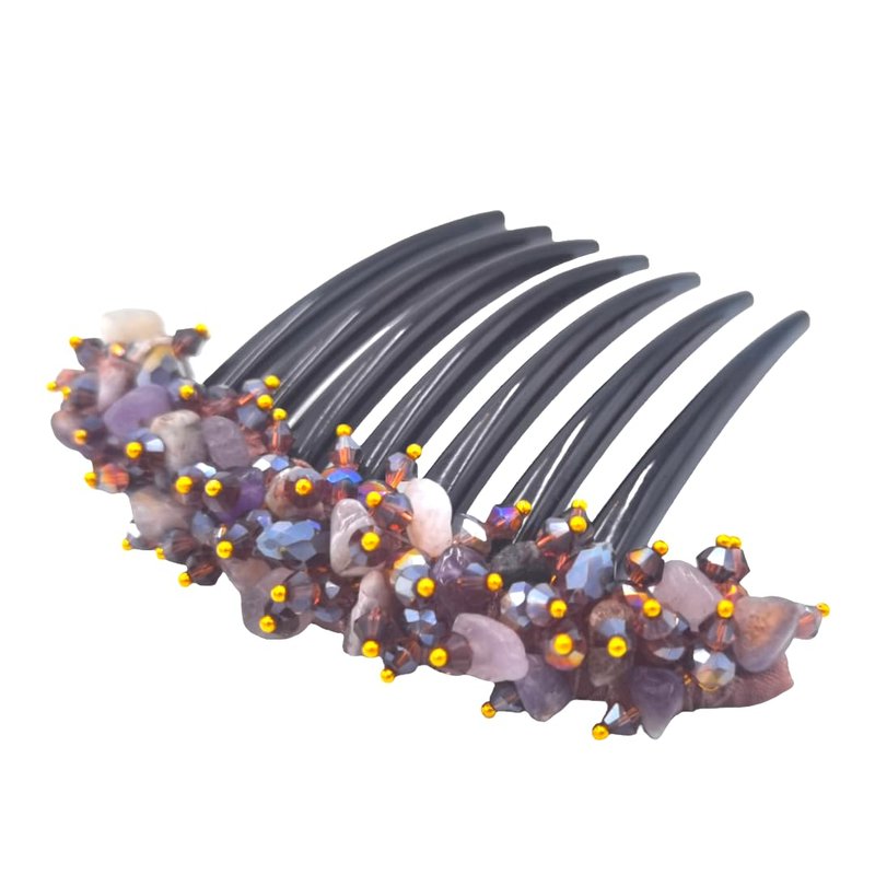 Side Comb French Twist Hair Comb Hair Accessories Decorative Hair Wedding Hair Accessories Ornamented Along top of Heading with Stone (Purple)