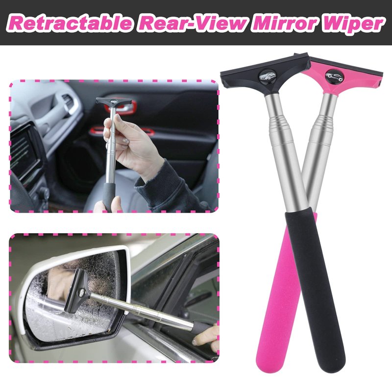 - Retractable Design:Extendable mirror wiper handle helps you easy to deal with the both side mirror covered with rainwater cleaning.Up to 99cm/39inches length.When you are driving, you don't need to get off,open the driver seat window and remove the water on the rearview mirror, then, lengthen the handle to clean the other mirror. It takes you less than 30 seconds to finish all these steps. Great car accessories.