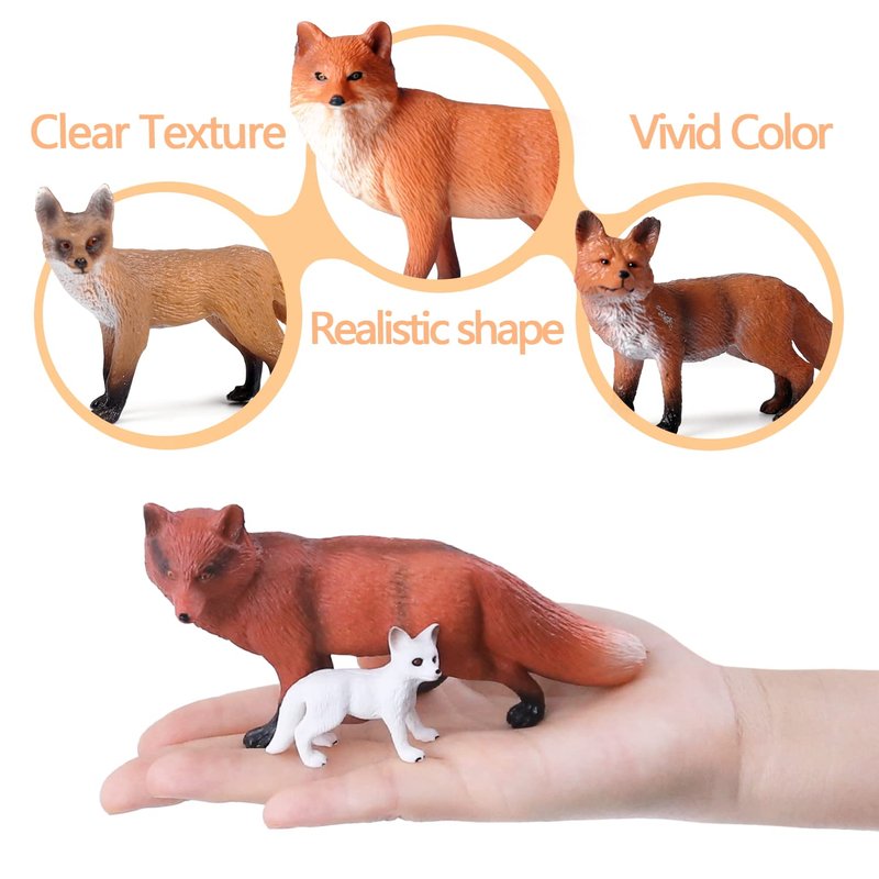 - 【Multiple Usage】-The fox figurines set is true-to-life detail, vivid colors and active poses, these models are designed for teachers, children, collectors, animal lovers and pastry cook. These animal figurines can not only be early education tools but also perfect for cake topper, cupcake toppers, jungle party and Christmas party decorations, etc. Animal figures also can be put in the pool or bath tub for child to enjoy bathtub time!