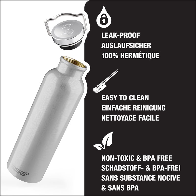 - SAFE DRINKING: All materials used to design SIGG water bottles are free of harmful pollutants, such as oestrogenic substances and phthalates. Enjoy every sip out of this BPA free water bottle, ensuring a neutral smell and taste.