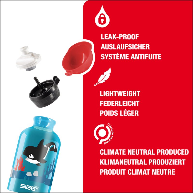 Sigg - Kids Water Bottle - Orca Family - Leakproof - Lightweight - BPA Free - Aluminum - 10 Oz