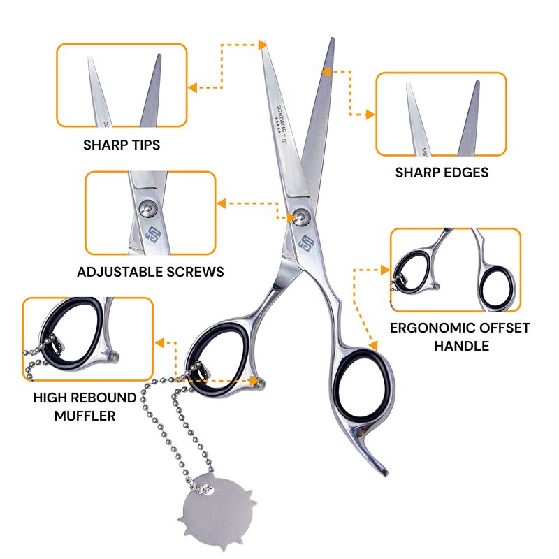Sightwing hair scissors 7 Inch-Japnese Stainless Steel Razor Edge Barber Shears, Hair Cutting Shear, Hair Cutting Scissors, and Hair scissors Professional for Men/Women/Barber/Salon (Silver)