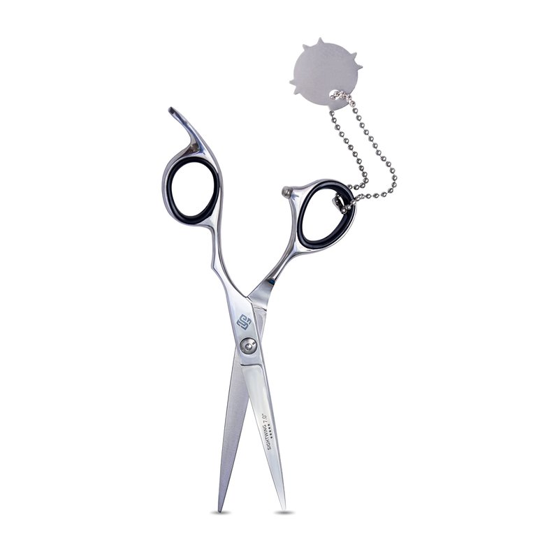 - Ergonomics, it's a very comfortable and firm grip scissor for hair cutting. Razor edges provide extra efficiency which refines the hair cutting experience and makes it light on your fingers. A comfortable curved handle makes it easy to use and less fatigable.