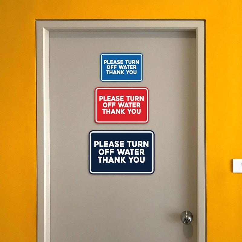 Our Signs ByLITA Classic Framed Please Turn Off Water Thank You Sign can be attached to the door, wall or window. Our signs are designed and manufactured by us. The signs are made out of durable material that is weather resistant. Each sign comes with an adhesive foam backing, allowing them to be attached to any flat surface. Comes in multiple colors. Our turn off water signs are great for your home, property or office. Small sign is 4"H X 6" W