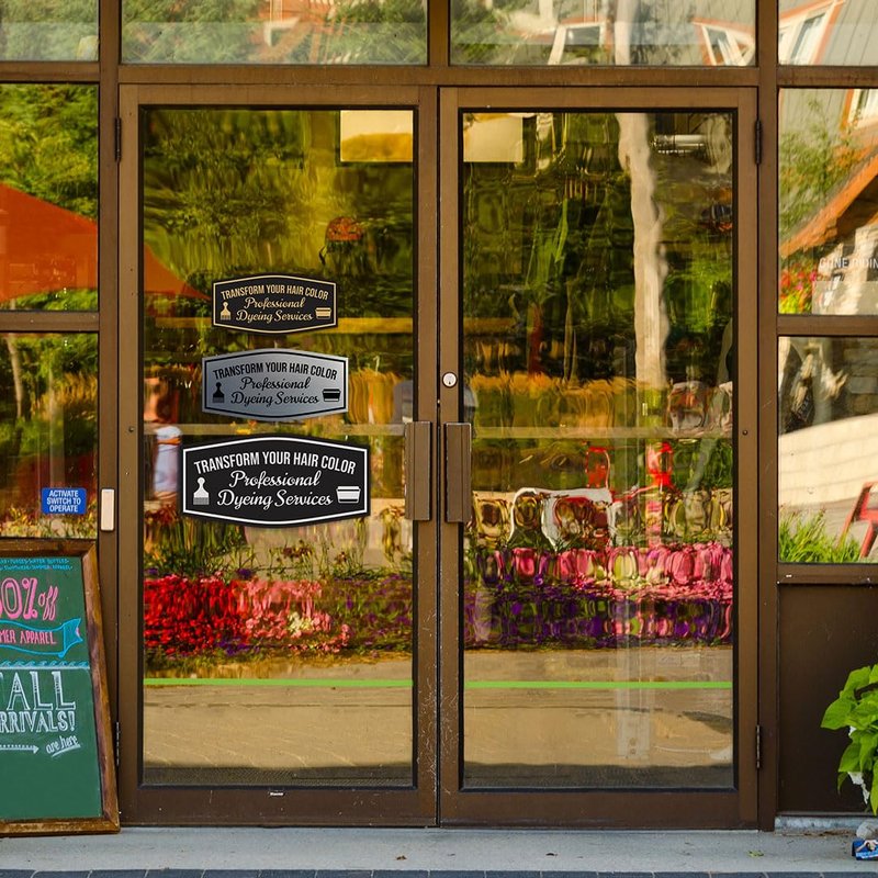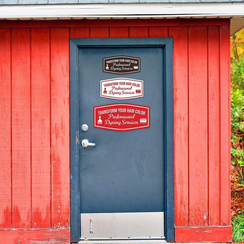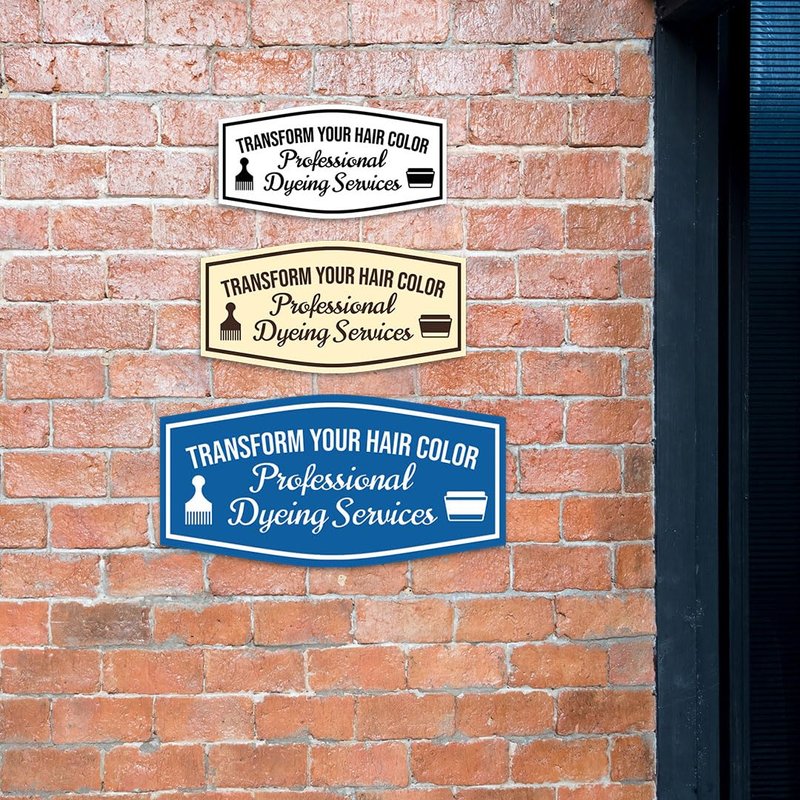 Our Signs ByLITA Fancy Transform Your Hair Color Professional Dyeing Services Sign can be attached to the door, wall or window of your home or business. The sign text and design work is laser engraved into sturdy plastic. Each sign comes with an adhesive foam backing, allowing them to be attached to any flat surface. Comes in multiple colors. Our barber shop signs are great for your business, parlor or shop. Medium sign is 3.5"H X 7" W