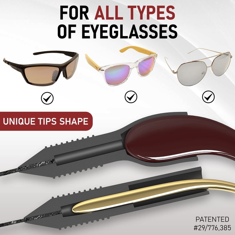 - Universal Silicone Tips - Our patented sunglass strap for man has silicone bushing-type tips which will be a good fit for any type of glasses temples. The eyeglass holder is easy to put on the temple