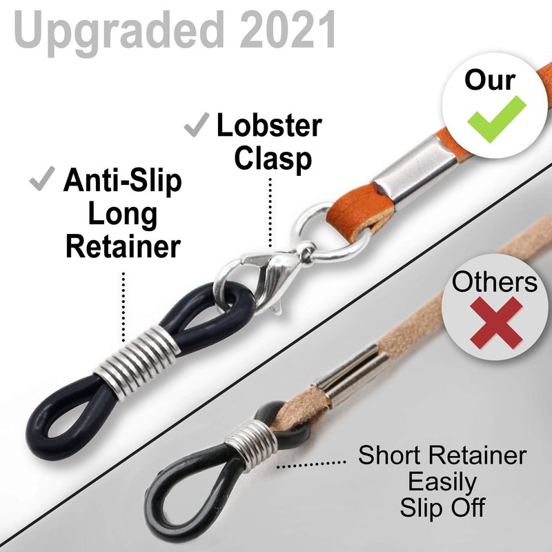 - Premium Eco Leather - Made with top quality PU leather material, this eyeglasses holder strap will provide stylish functionality unlike other glasses cord that will leave you looking old. Perfect necklace for adults and children