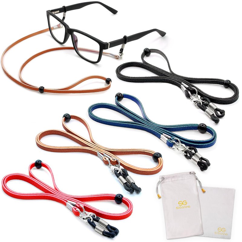 SIGONNA Eyeglasses Holder Strap Cord - PREMIUM ECO LEATHER Eyeglasses String Holder Chain Necklace - Glasses Cord Lanyard - Eyeglass Retainer