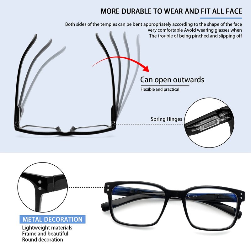 - Rugged spring hinges and temples make it open and close smoothly, durable and not easy to break.