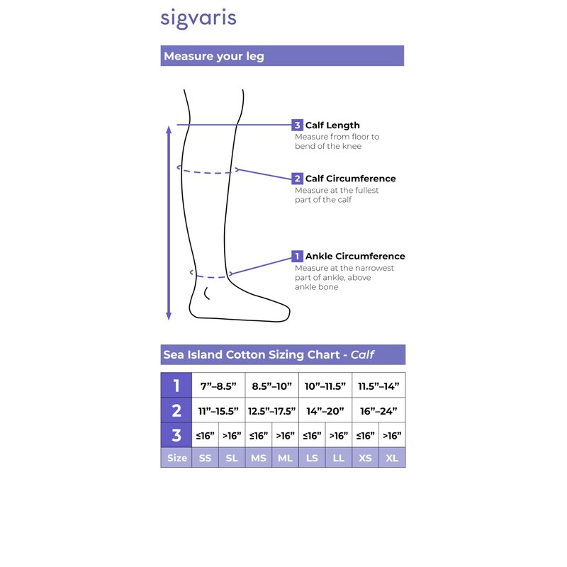The Sigvaris WELL BEING SEA ISLAND COTTON collection is best suited for tired, heavy, restless, aching legs and for travelers, those with occupational leg health risks, expecting mothers, and for those with a family history of vein issues.