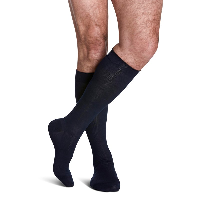 Sigvaris Men's Sea Island Cotton 191 Calf High Compression Socks 15-20mmHg - Navy - B (Medium)