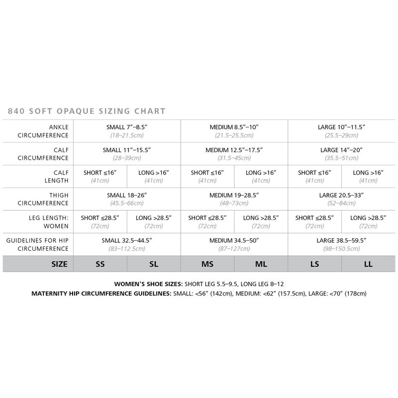 For moderate and more severe symptoms: The SOFT OPAQUE 840 Series are part of the SIGVARIS MEDICAL collection and are designed to ensure correct fit and accurate compression. SIGVARIS MEDICAL products fit various lifestyles and are best suited for those with chronic venous disorders, edema, stasis, skin changes, and for those who have had or will be having a vein procedure.