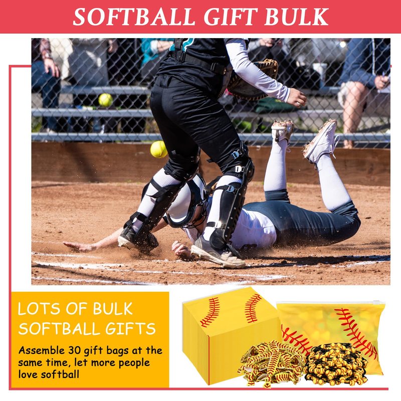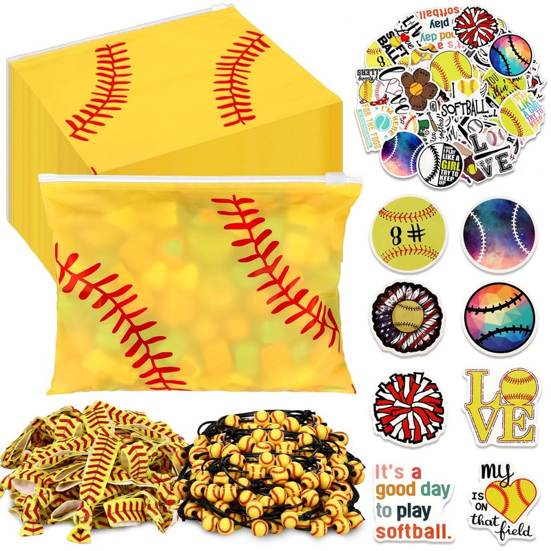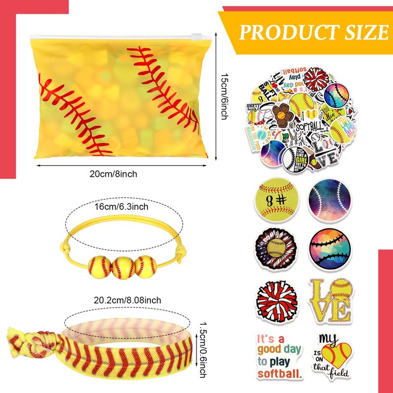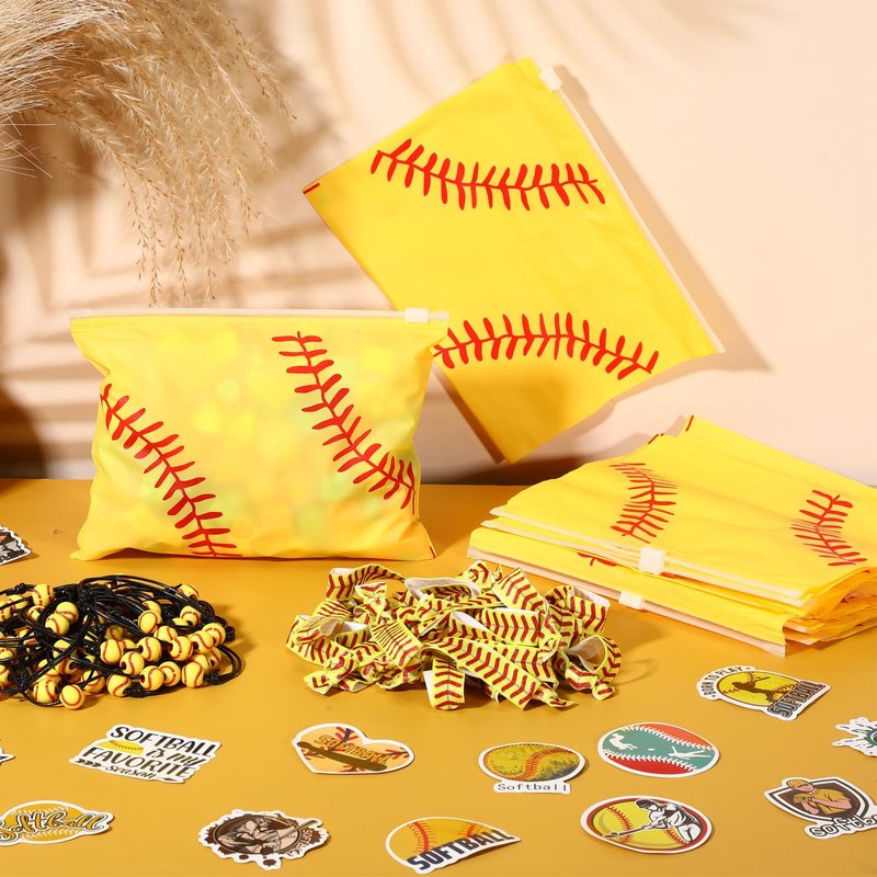- Complete Softball Party Favors: our softball party favors come as a complete package, providing enough stuff you need for an unforgettable softball themed party; With 30 softball gift bags, 30 softball bracelets, 30 softball hair ties, and 6 packs of softball stickers (300 pcs) included, you'll have more than enough supplies to ensure all your guests leave with a smile