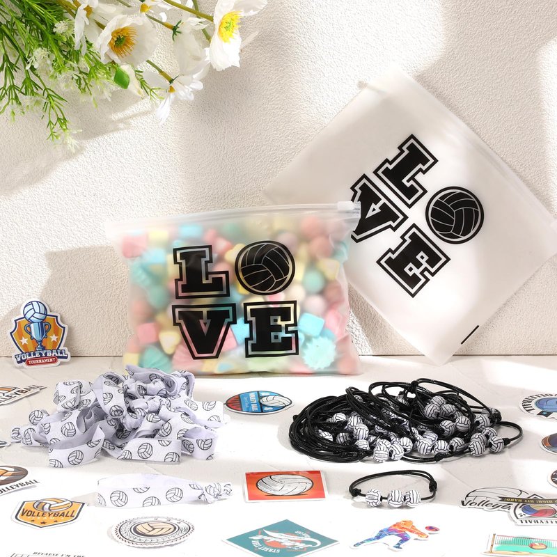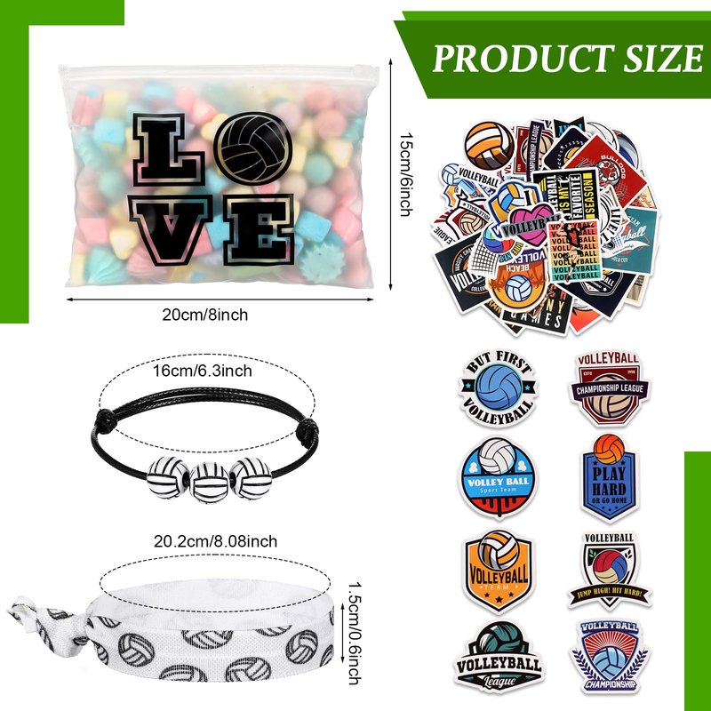Siifert 390 Pcs Volleyball Party Favors Volleyball Team Gifts for Girls Women Include 30 Goodie Makeup Bags 30 Bracelet 30 Hair Ties 300 Sticker for Volleyball Sports Lovers Birthday Party Decoration