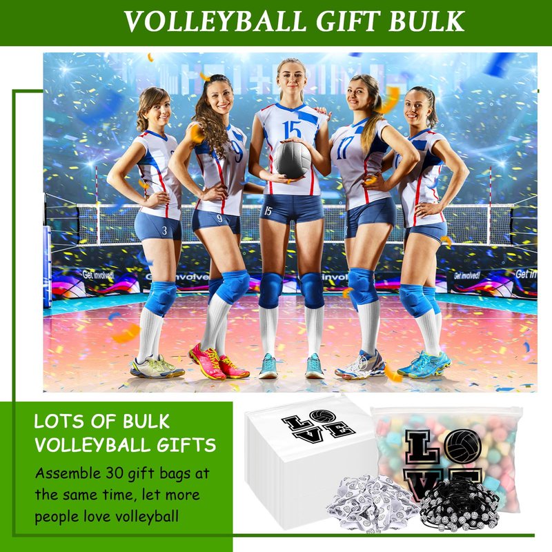 - Complete Volleyball Party Favors: our volleyball party favors come as a complete package, providing enough stuff you need for an unforgettable volleyball themed party; With 30 volleyball gift bags, 30 volleyball bracelets, 30 volleyball hair ties, and 6 packs of volleyball stickers (300 pcs) included, you'll have more than enough supplies to ensure all your guests leave with a smile
