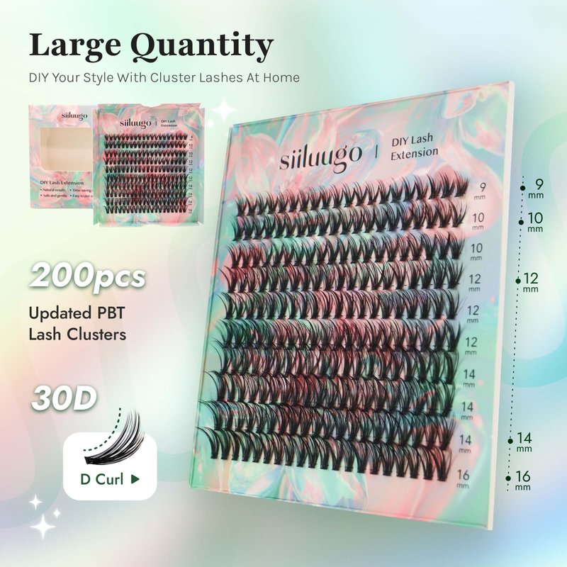 - 🤩【Refuse Falling Apart With SIILUUGO Cluster Lashes】Compared with other lash clusters, our lash clusters band is stronger and thinner. So you will feel easier and more comfortable when using the DIY cluster lashes. Easy to pick up without falling apart, soft and comfortable to wear.