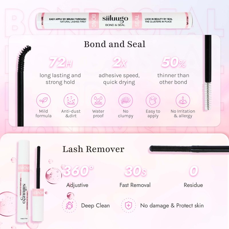 - 🤩【Lasting Hold and Easy to Remove】SIILUUGO bond & seal is made of professional waterproof and sweat-resistant material. Don't worry about your eyelashes falling out at any time. The lash remover Oil-based formula will quickly dissolve lash glue and other oils and stains, leaving no trace behind, fast remove at several minutes.