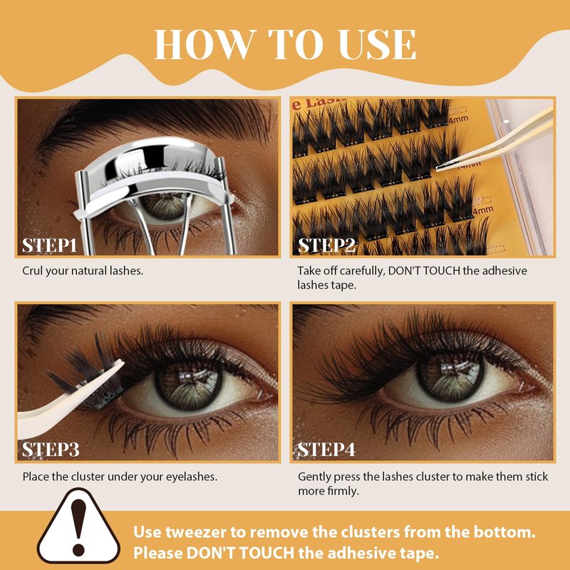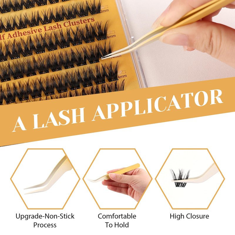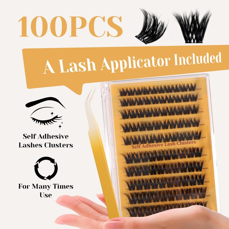 - 【Perfect Cluster Eyelash Extension Look】The self-adhesive lash clusters kit contains one box of eyelashes and lash tweezers. With a generous set of 100 self adhesive individual lash clusters in varying lengths, you have the power to create a unique lash line, from natural enhancement to light-drama, suiting your every mood and occasion.