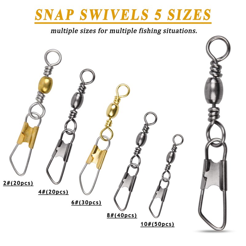 160pcs Barrel Swivel with Safety Snap Kit -Strong, Dependable and Easy Way to Change Your Lure,Weight or Leader