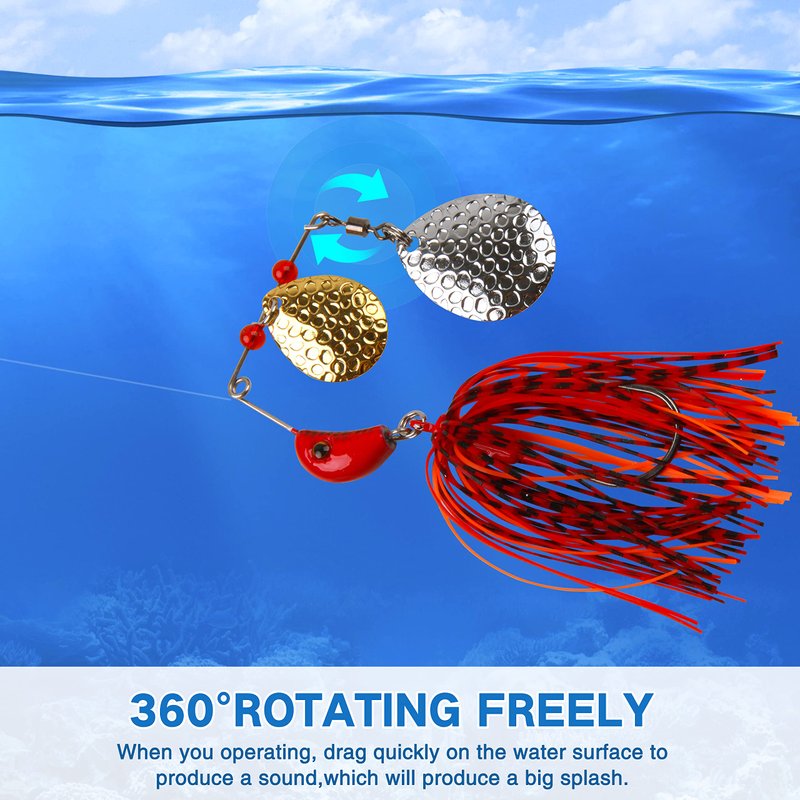 Bass Spinner Baits come with COPPER Willow Double-Blade enhance flash and vibration,They spinner straight and buzz correctly,resist corrosion and not fall off