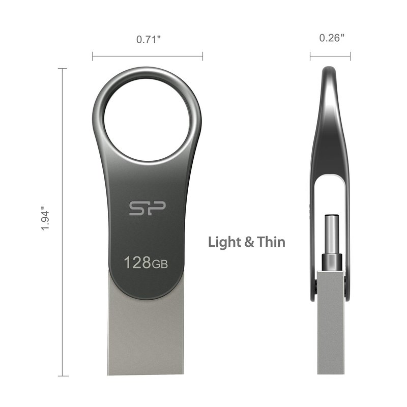 Silicon Power C80 64GB Flash Drive Type C Swivel Dual Flash Drive (USB-A 3.0 / USB-C) Ready for Smartphones, Tablets and New MacBook (SP064GBUC3C80V1S)