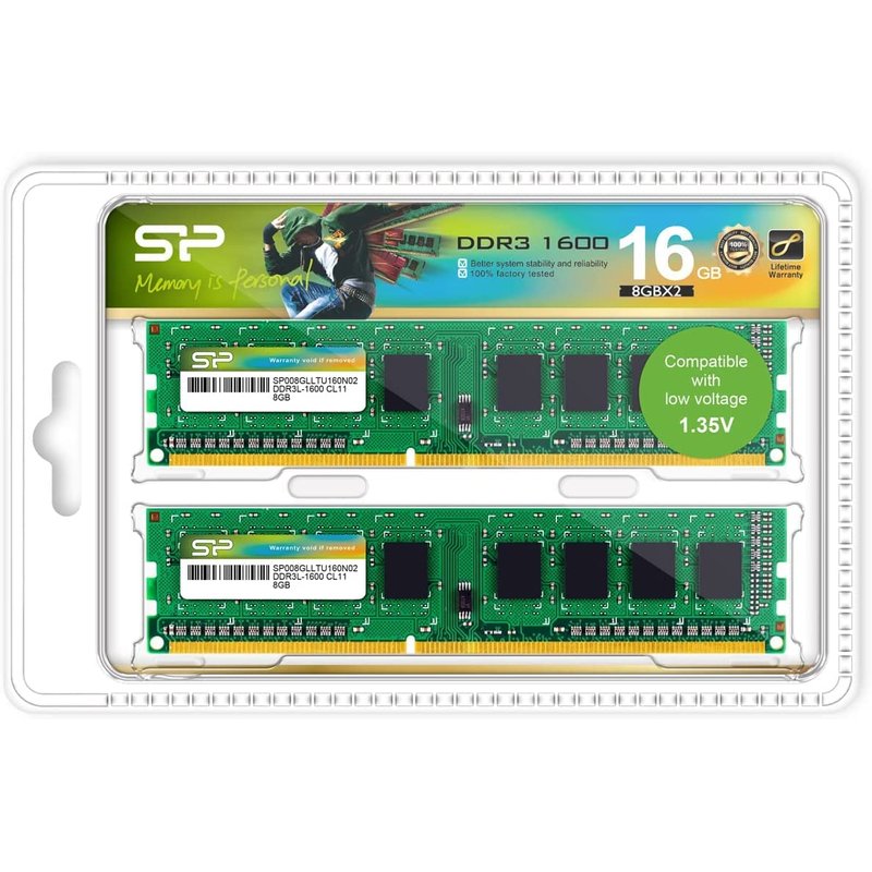 Silicon Power DDR3 16GB (2 x 8GB) 1600MHz (PC3 12800) 240-Pin CL11 1.35V / 1.5V Unbuffered UDIMM PC Computer Desktop Memory Module Ram Upgrade