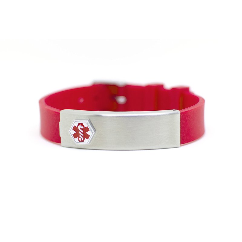 Silicone Adjustable Medical ID Bracelet Stainless Plate Opens (Red)