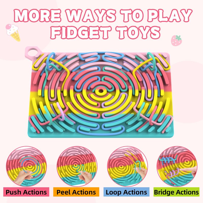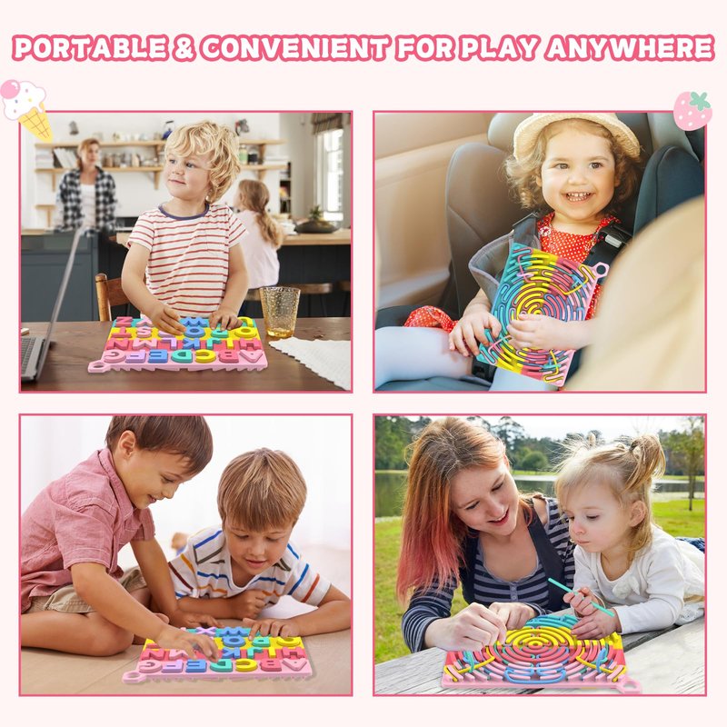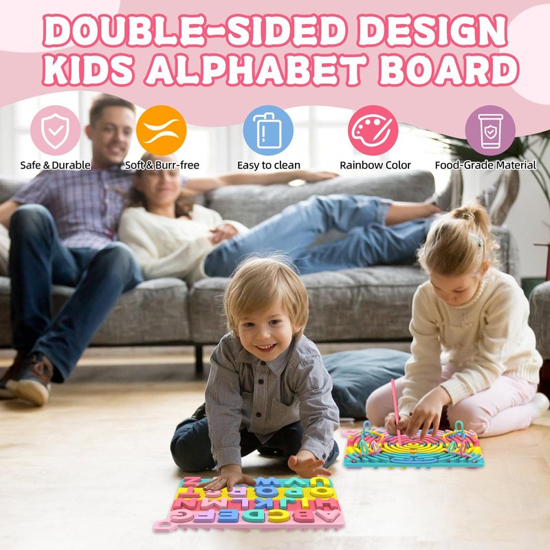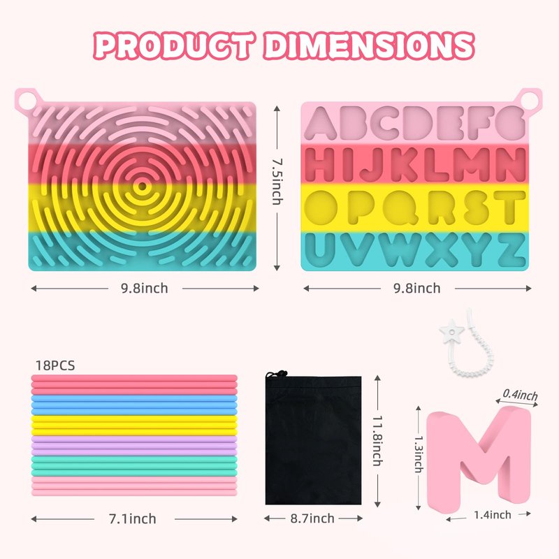 - SPECIAL GIFT: ABC Learning toys for kids ages 3-5, different ages can find joy on quiet fidget toys, can be shared with friends, classmates, parents. Great birthday gift for girls and boys, also Easter, Halloween and Christmas toys for preschoolers and adults. Package includes a storage bag and 26 silicone letter blocks, intricate activity board, 18 brightly coloured silicone strips