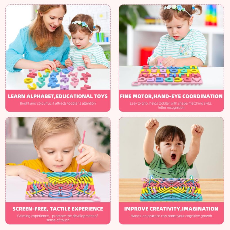- CREATIVE DESIGN: The unique design of alphabet matching game offers children two ways to play. The creative structure of the sensory activity board enhances children's hands-on skills and stimulates their imagination and creativity during play. Tactile experiences such as pushing, peeling, tying and building improve fine motor skills and hand-eye coordination, provide a quiet experience