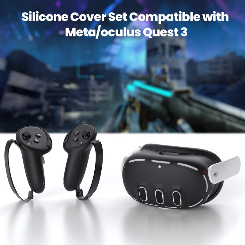 - VR Headset Shell Cover: Precise hole position ensure perfect heat dissipation to reduce power consumption during gameplay sessions. Made of Soft Premium Silicone - Made of sub-millimeter precision Silicone can fits tightly on the VR headset effectively prevent Compatible with Meta Quest 3 from accidental damage.