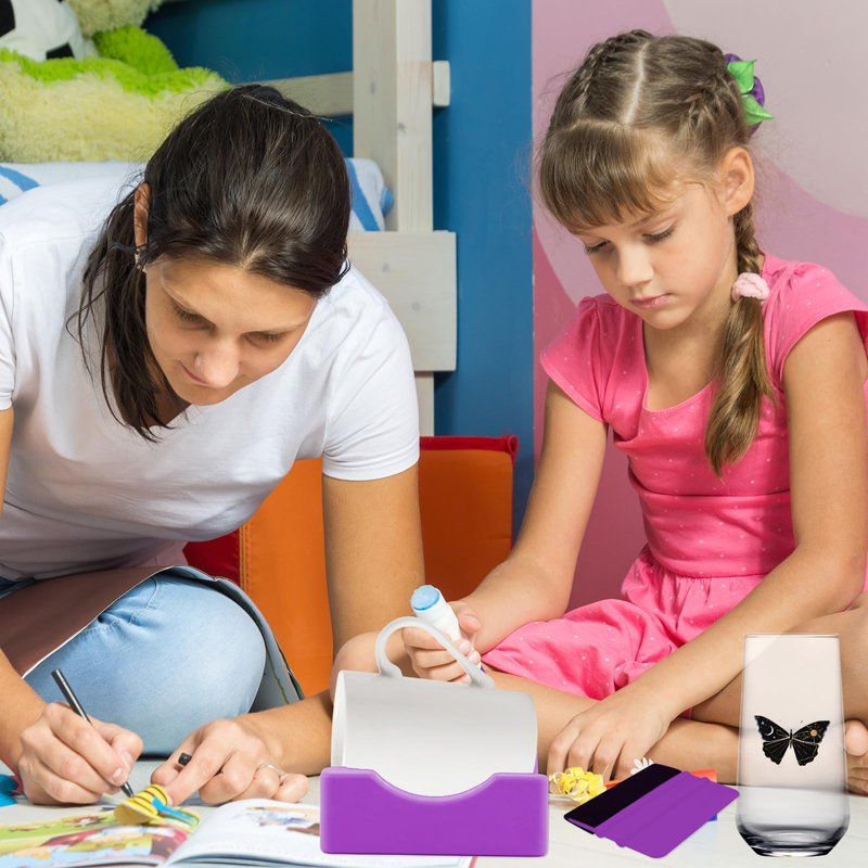 - 【Package Include】You will receive 2 SET of Anti-Skidding silicone cup cradle with Built-in Slot and felt edge scraper. We have two colors, blue and pink, very nice colors.The vinyl holder can hold many different sizes of water glasses or water bottles.Add joy to your life, or give as a handmade gift to family and friends. Very Perfect!