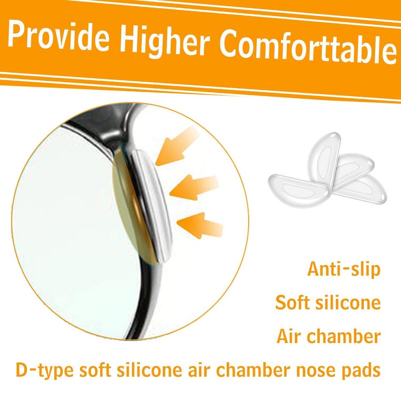 - Maximum Comfort : 1.3mm diameter of surgical grade silicone eyeglasses nose pads , ergonomic d-type design, more soft and comfortable.