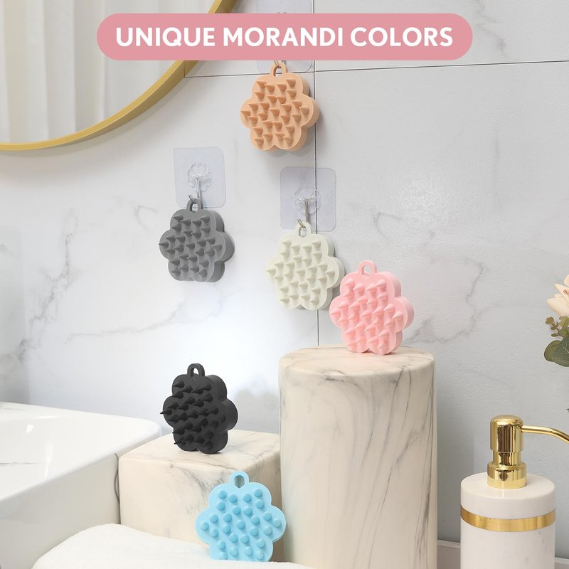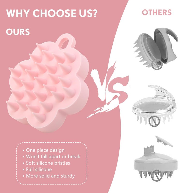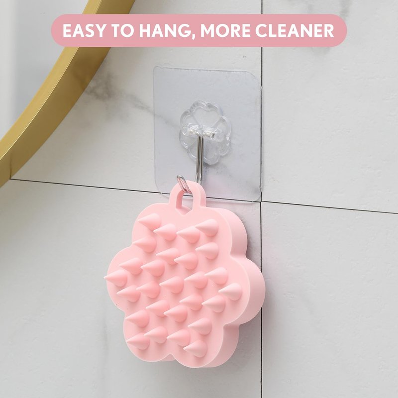 - 【Features of Silicone Shampoo Brush】: Shampoo brush head unique Plum blossom shape design, more beautiful and stronger than similar products. Silicone shampoo brush is lightweight (2.4oz ), 27 ball brush head molded in one piece. The silicone massage comb has holes and can be hung up when not in use, making it clean and convenient.
