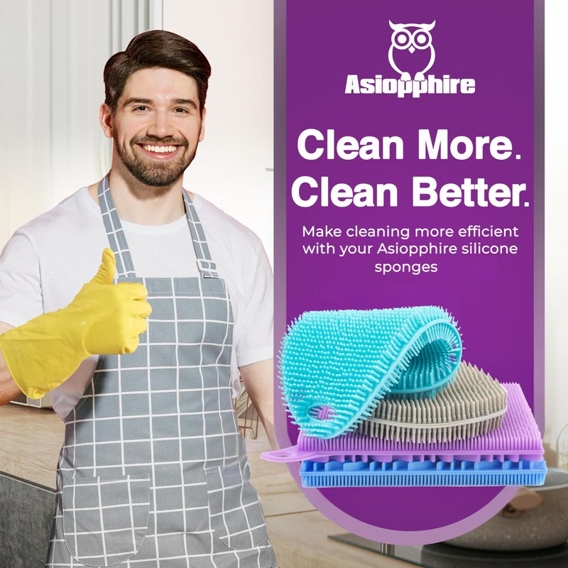 - At Asiopphire, we're committed to creating the durable, efficient home & dish washing accessories you need for a clean, sustainable home. We use our silicone scrubber dish sponges in our own home, testing for long-lasting quality and functionality. When our customers are happy, we're happy - which is why we back our silicone kitchen scrubbers for dishes with our customer happiness promise. If for any reason you don't love your sponge, we will make it right.