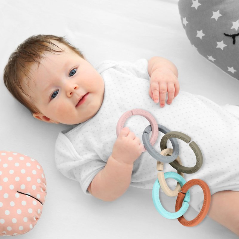 - Easy to Use: Great for the stroller, car seat, tummy time, or any time, the Silicone Teether Links are a lovely addition to all your little one's adventures.