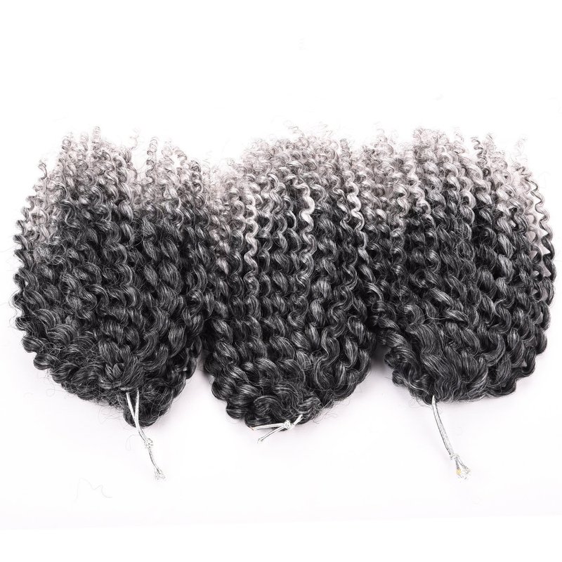 Silike Marlybob Kinky Curl Ombre Crochet Braiding Hair (3 Bundles/pack) 8'' Water Wave Crochet Hair Extensions For Women (T 1B/Grey)