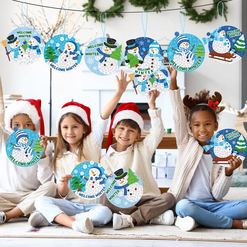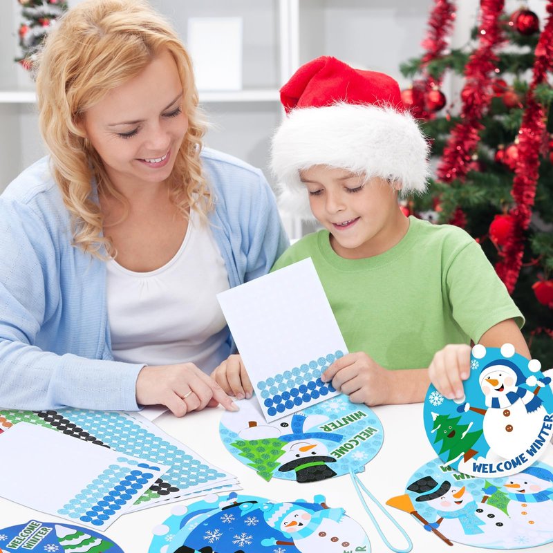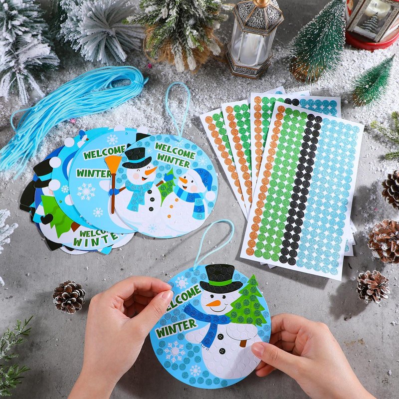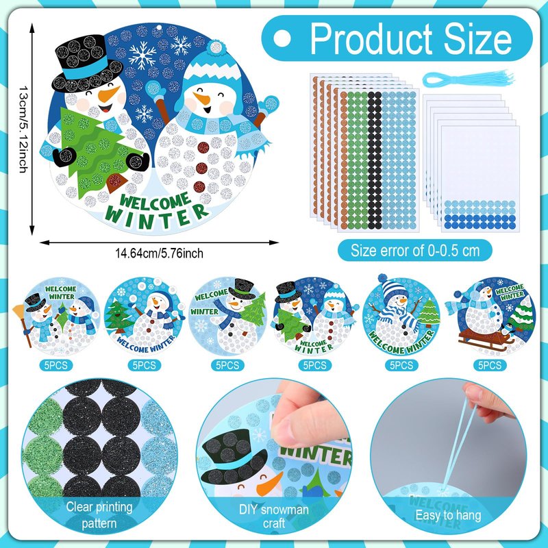 - Snowman Glitter Mosaic Sign Crafts Kit: the snowman glitter mosaic sign crafts kit contains 30 sets of glitter mosaic snowman sign crafts, comprising 30 pieces of snowman cardboard, a variety of colorful glitter round stickers, and a selection of designs to suit your creative requirements