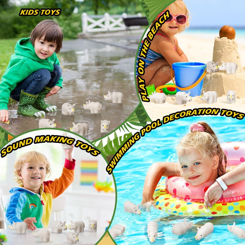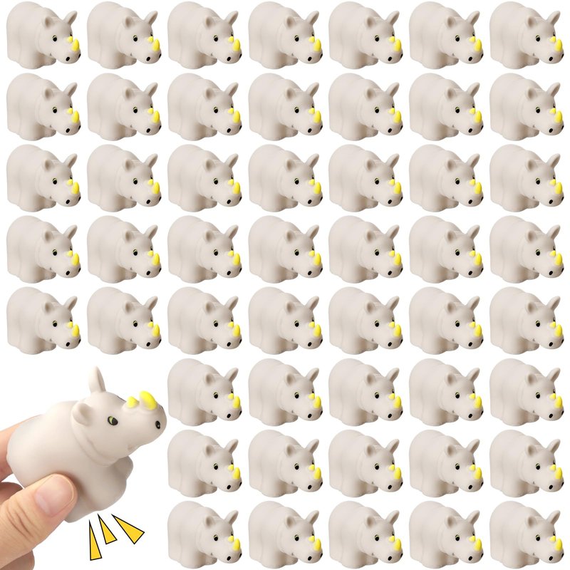 Silipull 50 Pieces Rubber Rhinoceros Bath Toy Bulk Tiny Rhino Toys Float Squeak Mini Rhinoceros Squeezable Toys Bathtub Toys for Baby Shower Party Supplies, 2.87 x 2.01 x 1.18 Inches